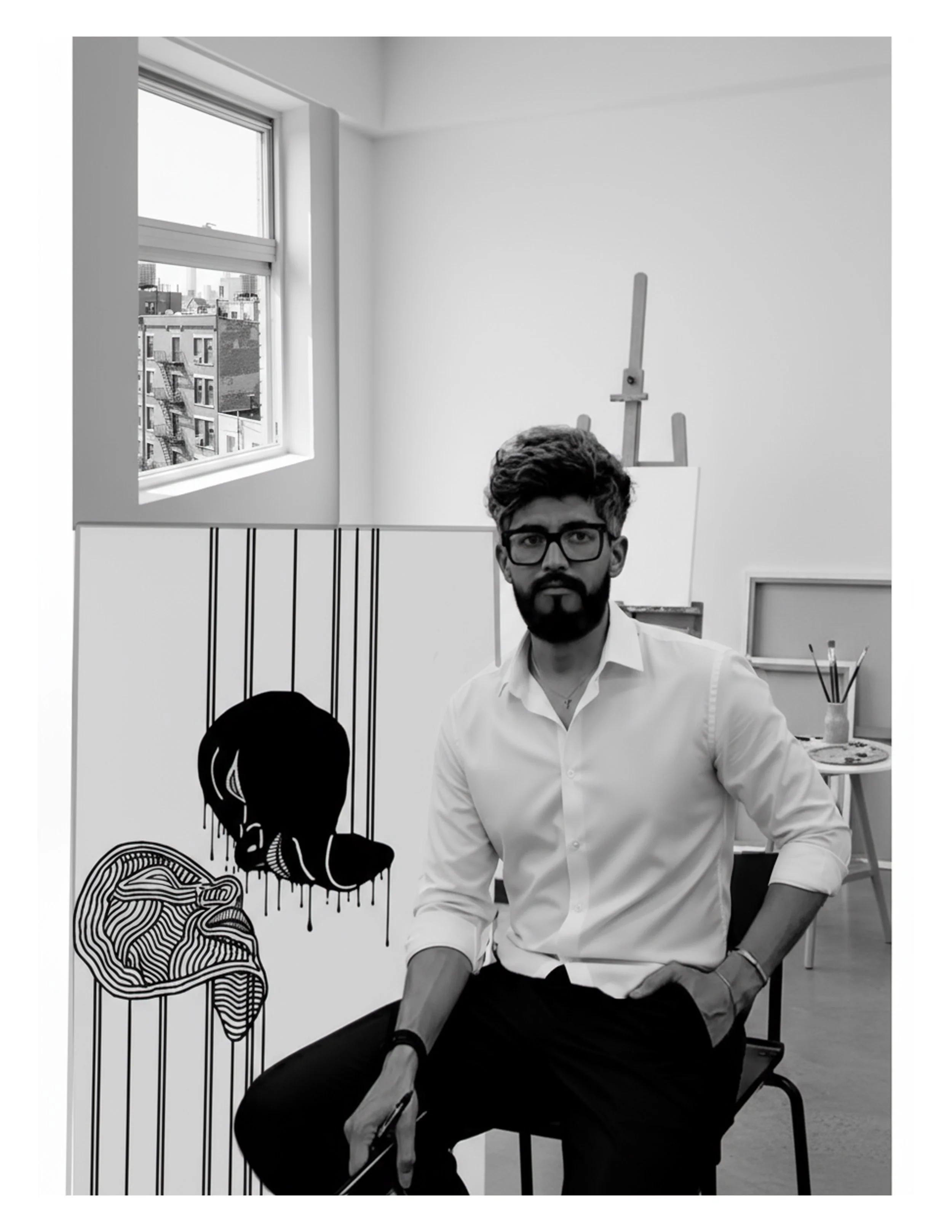 Here I sit beside one of my favorite works . A piece that feels less like something I created and more like something I uncovered within myself. The flowing lines, dripping silhouettes, and layered forms echo the unspoken dialogue between the visible and the hidden, the self we present and the self we carry quietly inside.